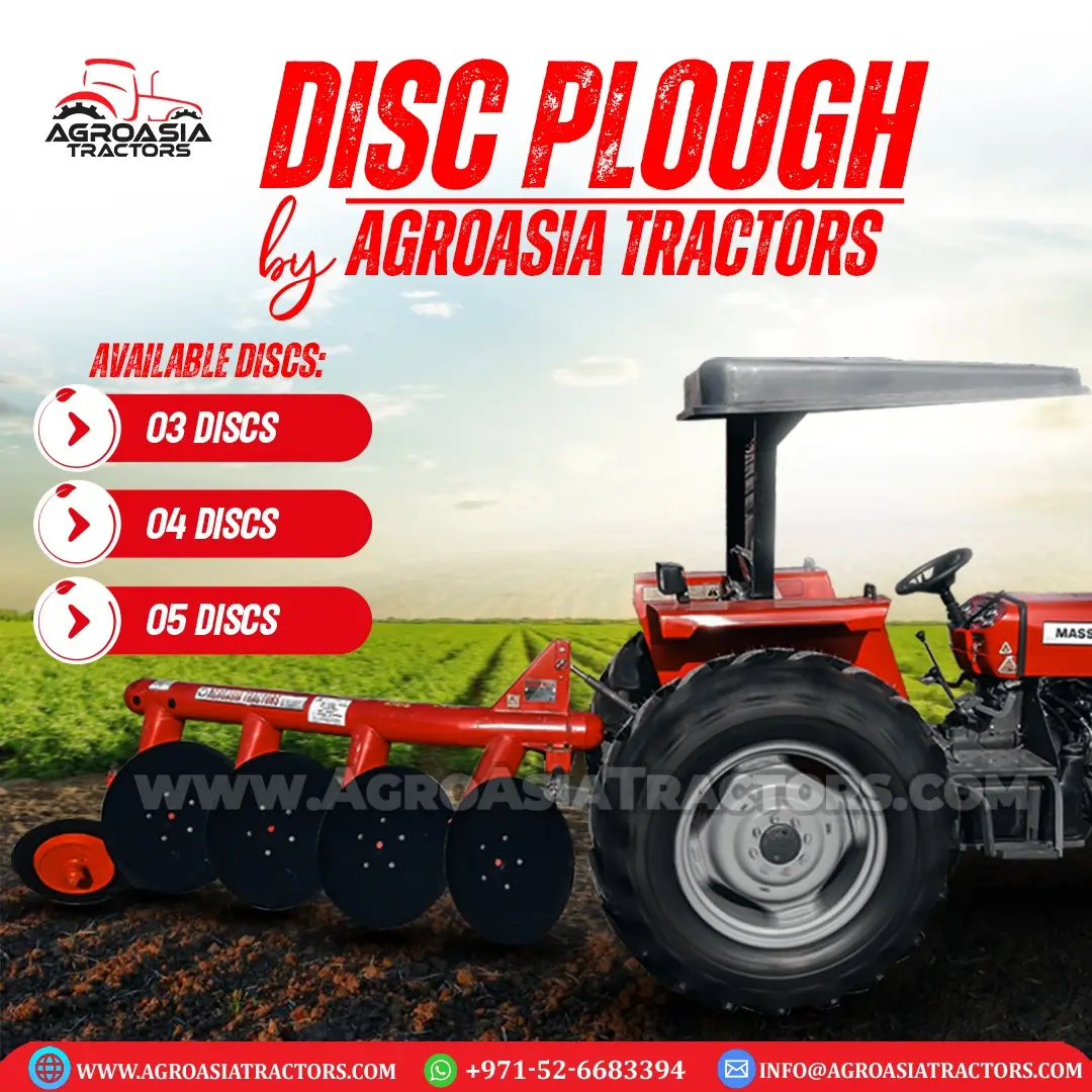 Agro Asia Disc plough is commonly used in virgin soil for soil breaking, turning and uprooting the crop remains. It is primary tilling equipment which is used before any farming activity. It is available from 2-6 discs which can be used according to the tractor pulling capacity.