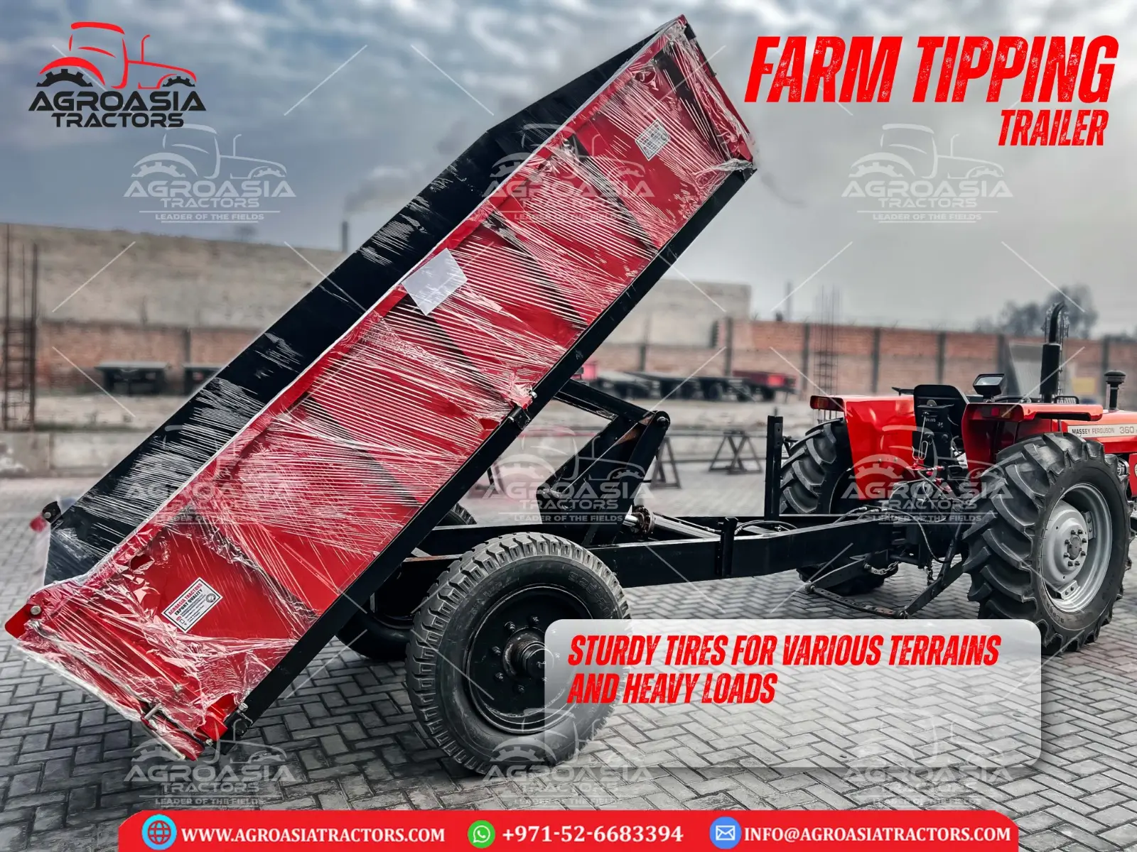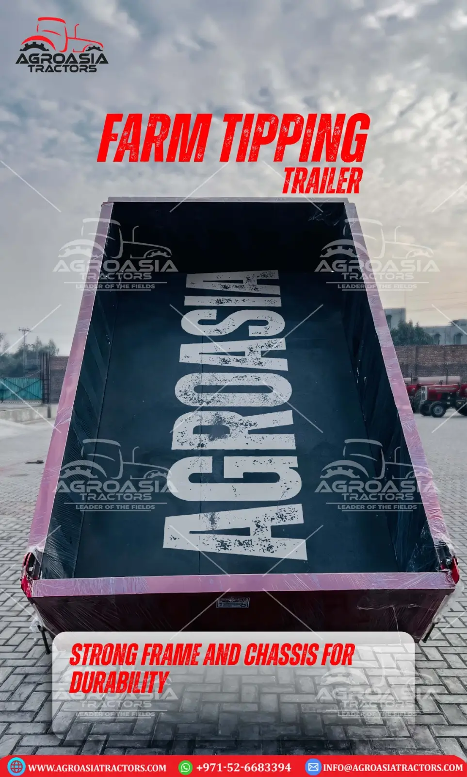 Agro Asia Farm Trailer Tipping Single Axle is a tractor towed unpowered vehicle. It is widely used in Farming and construction industry to carry Harvested Crops, Tractor Implements, Dirt, Gravel, stones and other things from one place to another. Agro Asia Tractors offers heavy Duty Farm Trailer starting with a capacity of 2 Tons to 20 Tons