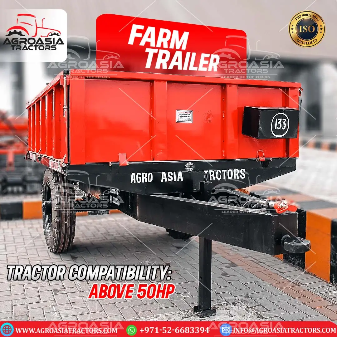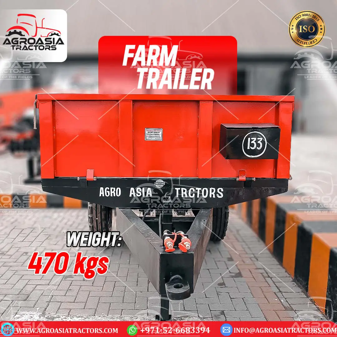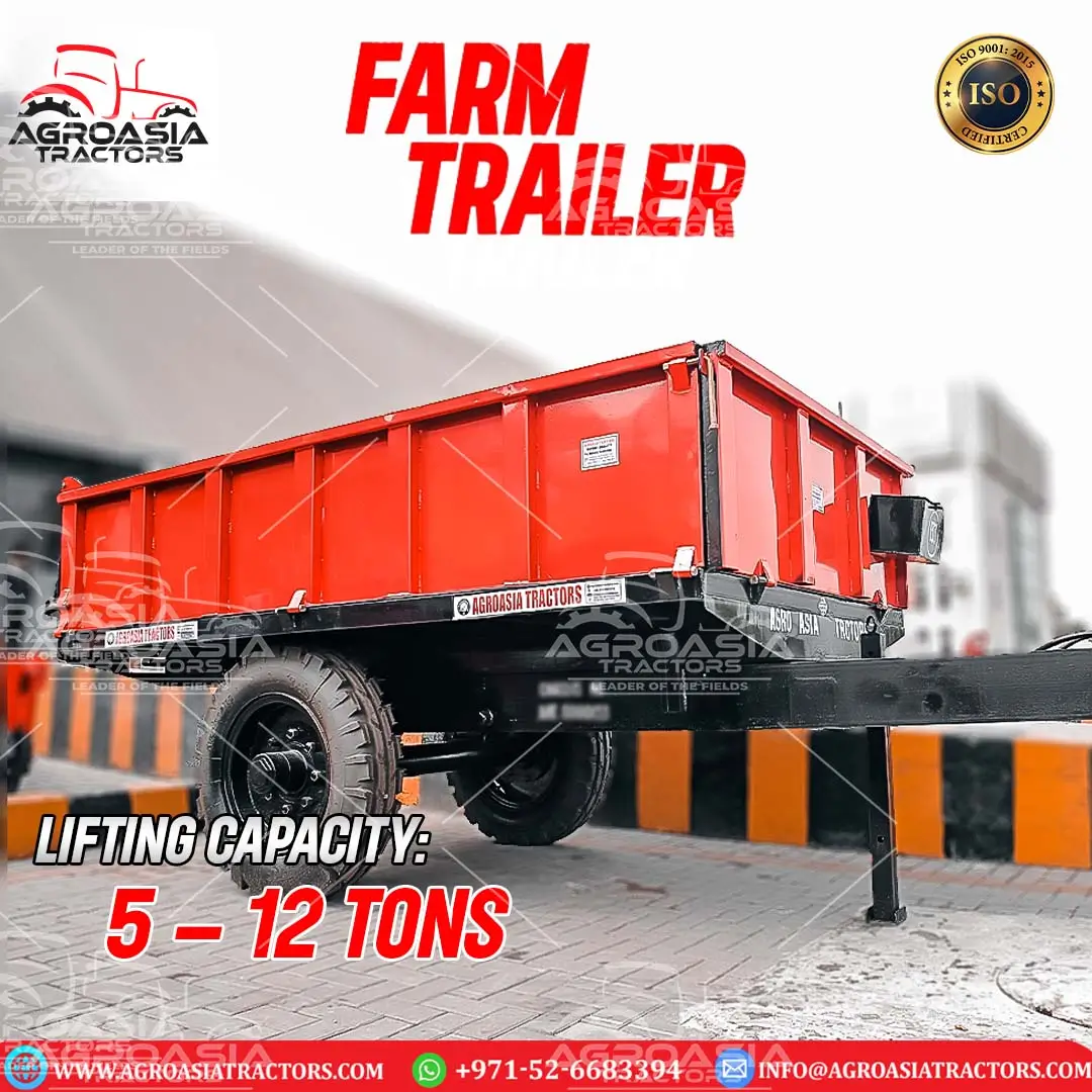 Agro Asia Farm Trailer is a tractor towed unpowered vehicle. It is widely used in Farming and construction industry to carry Harvested Crops, Tractor Implements, Dirt, Gravel, stones and other things from one place to another. Agro Asia Tractors offers heavy Duty Farm Trailer starting with a capacity of 2 Tons to 20 Tons