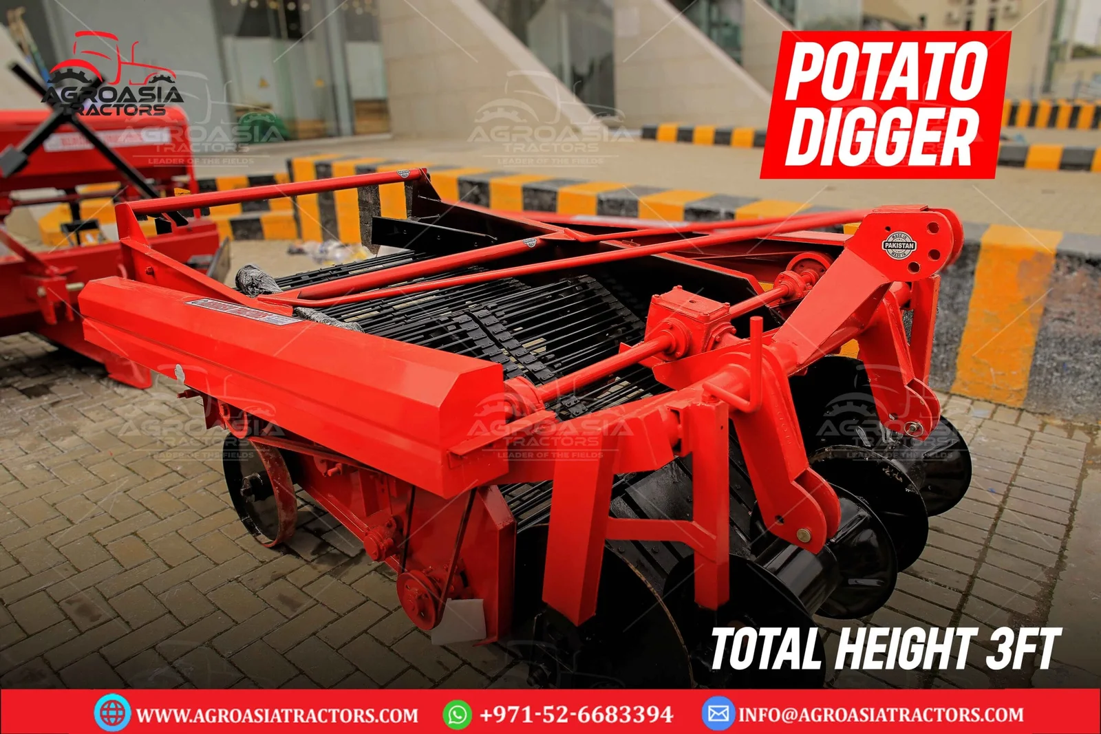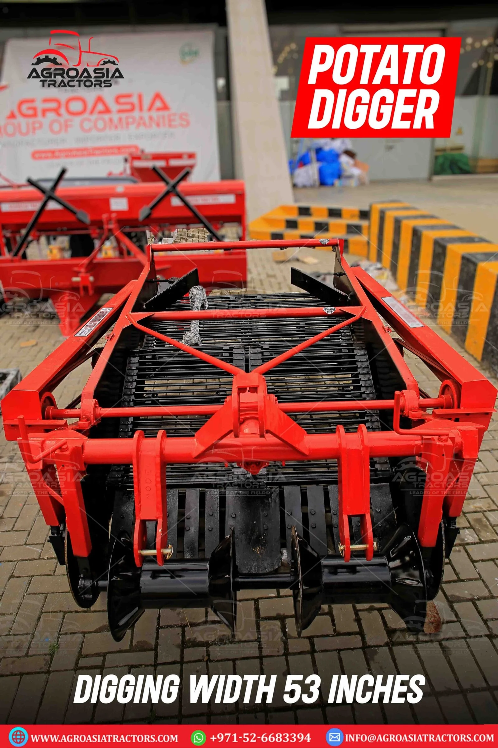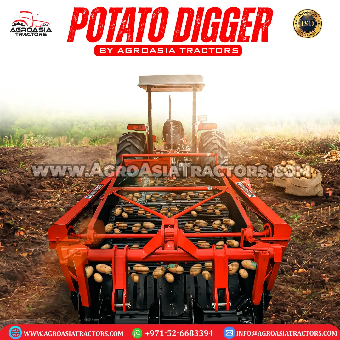 Agro Asia Potato diggers are most suitable for the small farms. It has 3 links to connect with the tractor and is PTO operated. It digs the Potato through rotating wings and the potatoes are spread on the field.